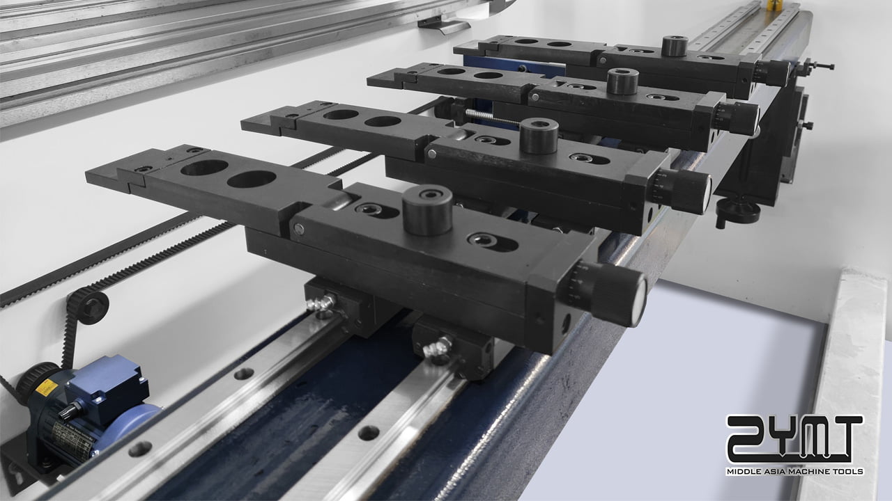 每台折弯机配有多个高精度挡指,挡指具有微调装置;横梁上配有双直线导轨,使挡指达到更高的精度。