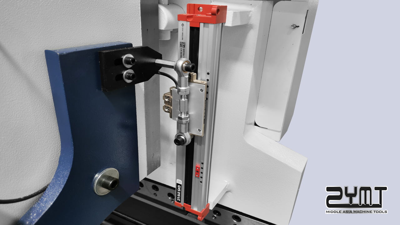 采用进口GIVI高精密磁栅尺作为位移传感器,安装在C型板上,用来检测油缸位置,反馈精度高达0.002mm,能辅助更好的控制折弯角度。